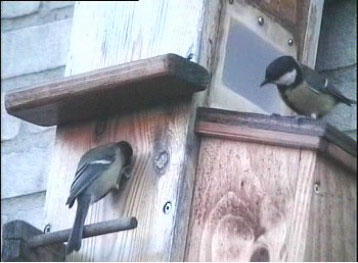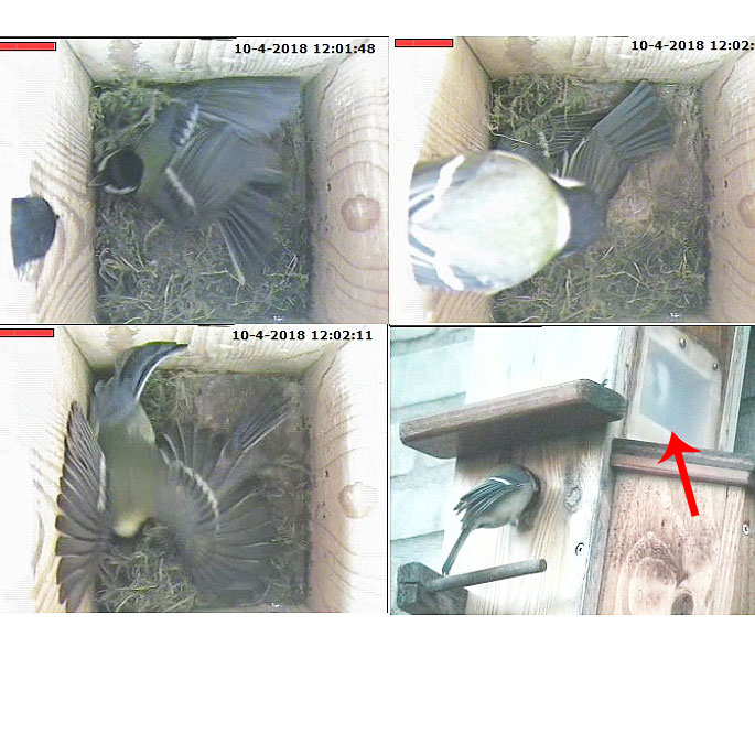 Nadat het mannetje eerst was wezen kijken kwam ook het vrouwtje even de nestkast inspecteren.