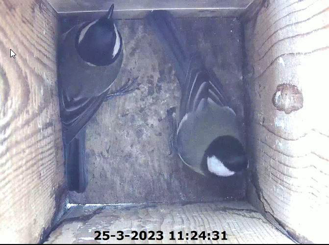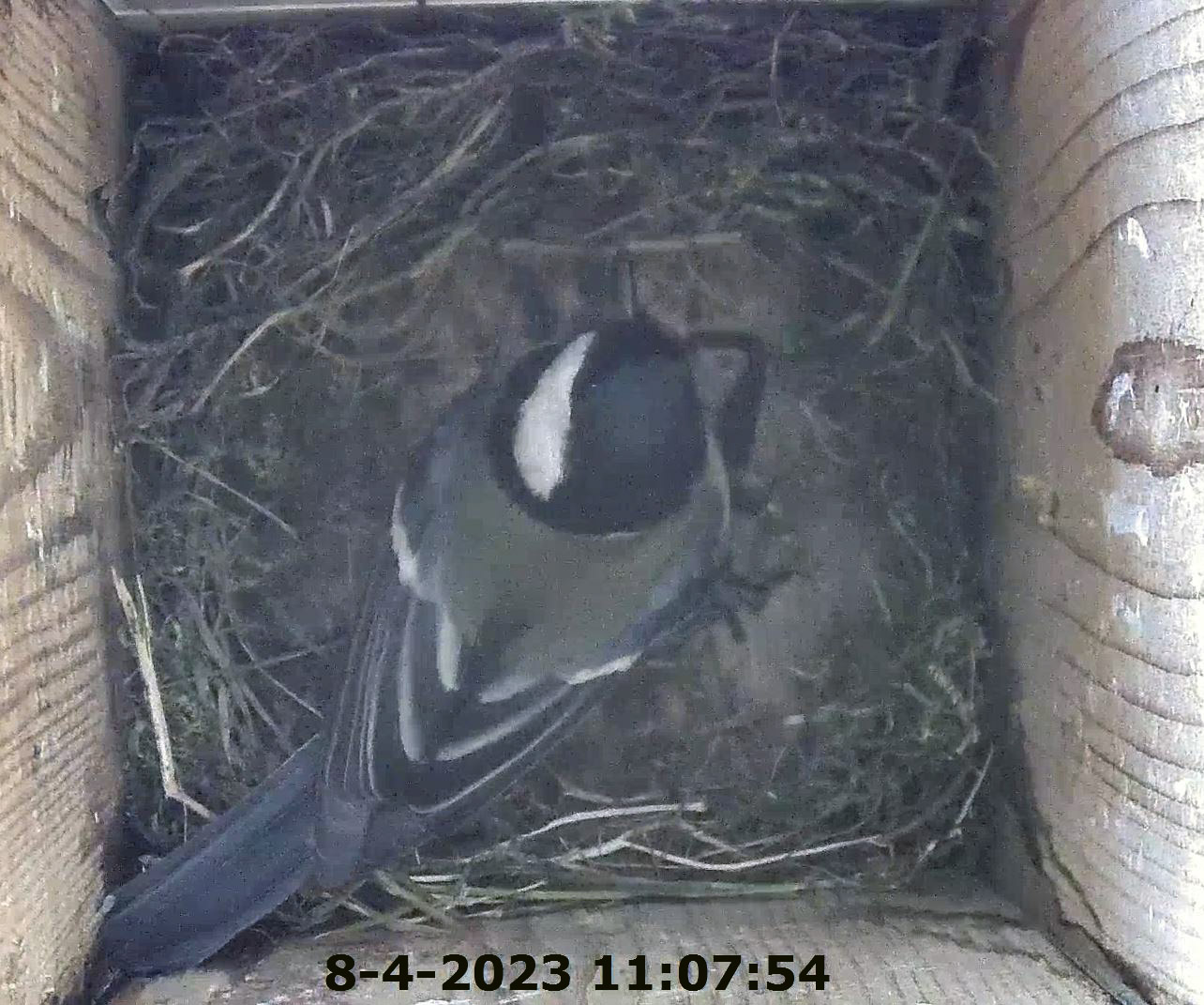 Hier het 2e koolmees kuiken in beeld die uitvliegt.