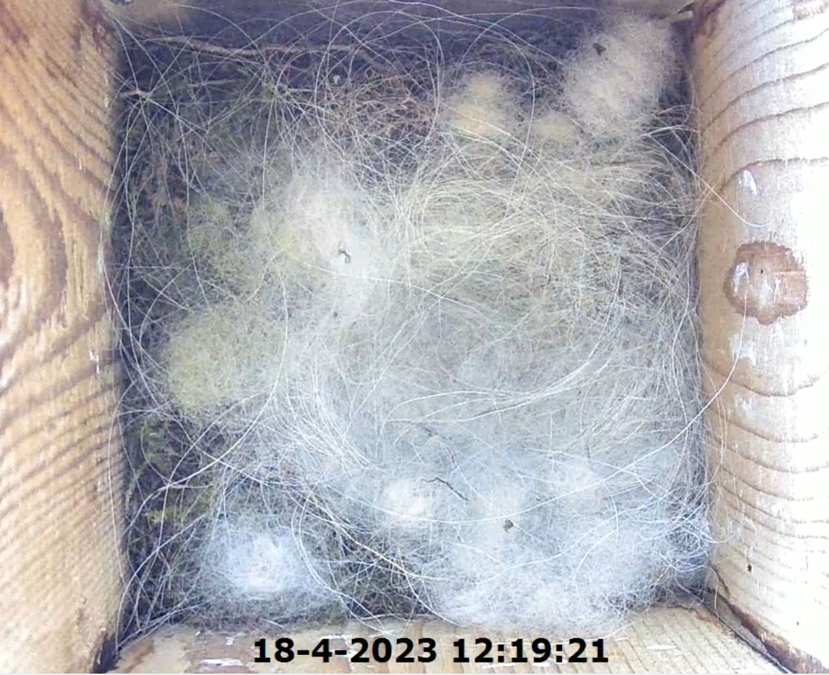 Het nest ligt al helemaal vol met zacht wolletjes.